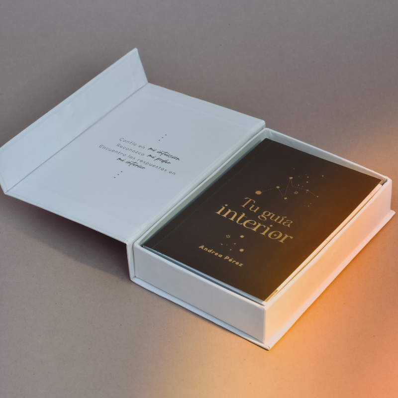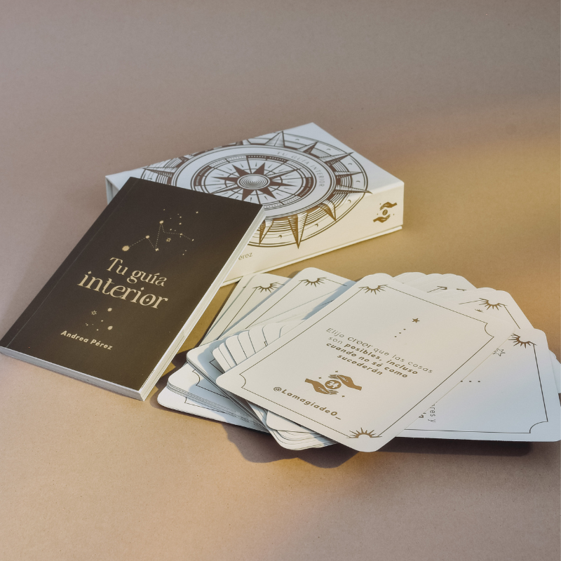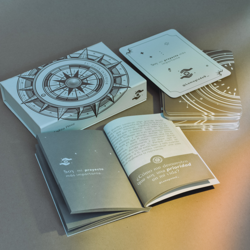 Tu Guía Interior es mucho más que un juego de cartas; es un espacio de conexión contigo misma/o. Diseñado para acompañarte en tu proceso de autoconocimiento y reflexión, incluye 52 cartas con afirmaciones positivas, cada una vinculada a una reflexión y una pregunta profunda en su minibook. Este conjunto te invita a explorar nuevas perspectivas, mejorar tu diálogo interior y cultivar una introspección más consciente.